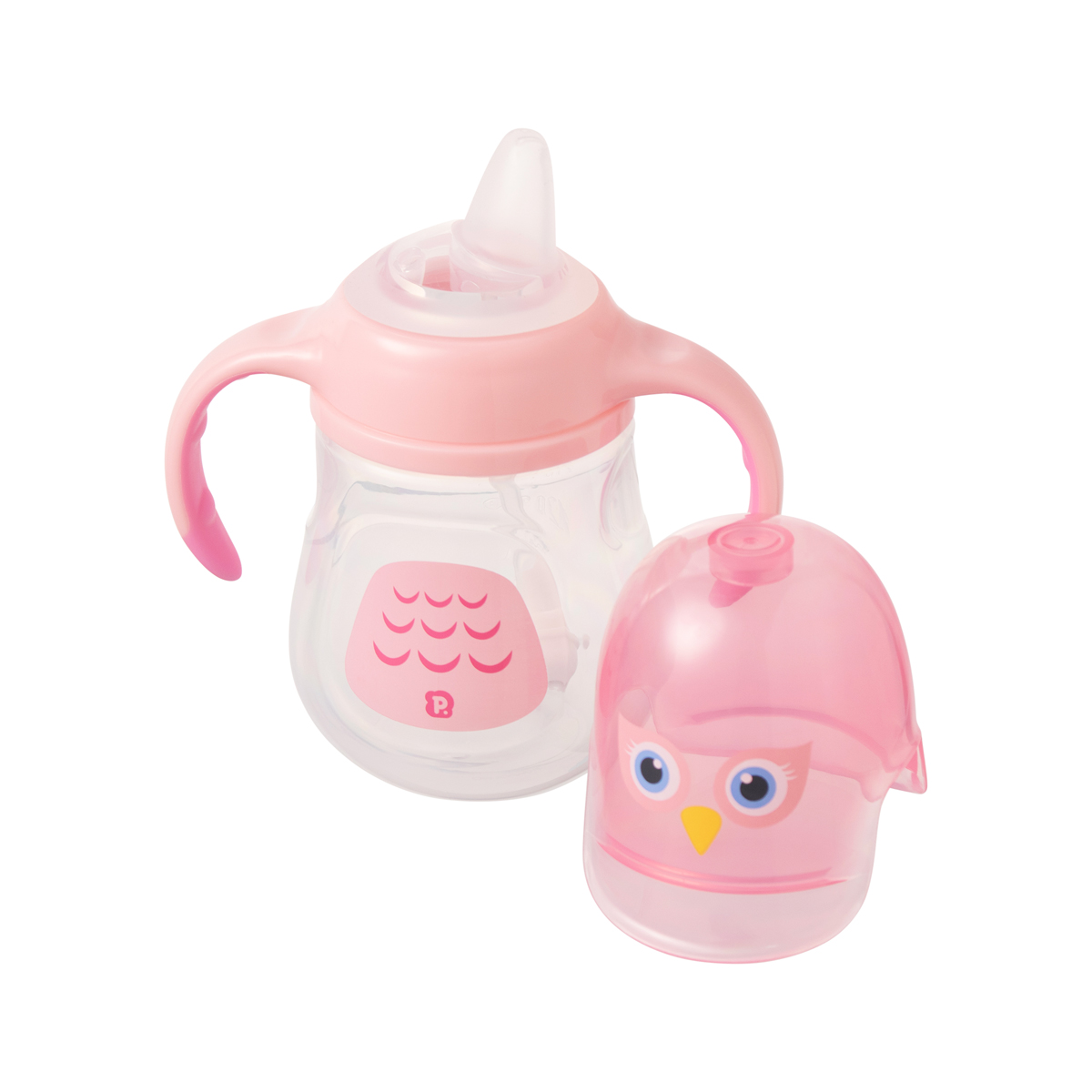 Copo de treinamento bichinho c/bico flexível, alça e tampa 240ml coruja fem Pimpolho